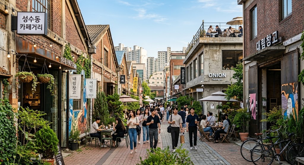 서울 성동구 성수동. 이곳을 수식하는 단어는 수없이 많습니다. '한국의 브루클린', '수제화의 본산', '팝업 스토어의 성지'. 그러나 이 화려한 수식어들만으로는 성수동이 가진 그 깊고 오묘한 공기를 다 설명할 수 없습니다. 성수동 카페거리는 단순한 소비의 공간을 넘어, 낡음과 새로움이 어떻게 화해하고 공존할 수 있는지를 보여주는 거대한 도시 재생의 서사시이기 때문입니다.